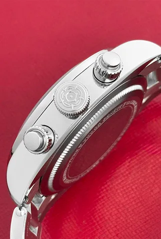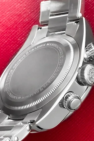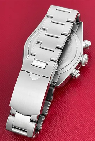 Case Material: Stainless Steel case with Tachymetre 316L matt black anodized aluminum bezel (42mm dia.). Water Resistant to 120 Meters – 400 Feet