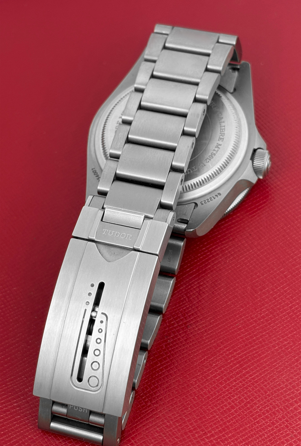 Bracelet: Titanium Tudor bracelet with deployant flip-lock expandable/stretch style clasp