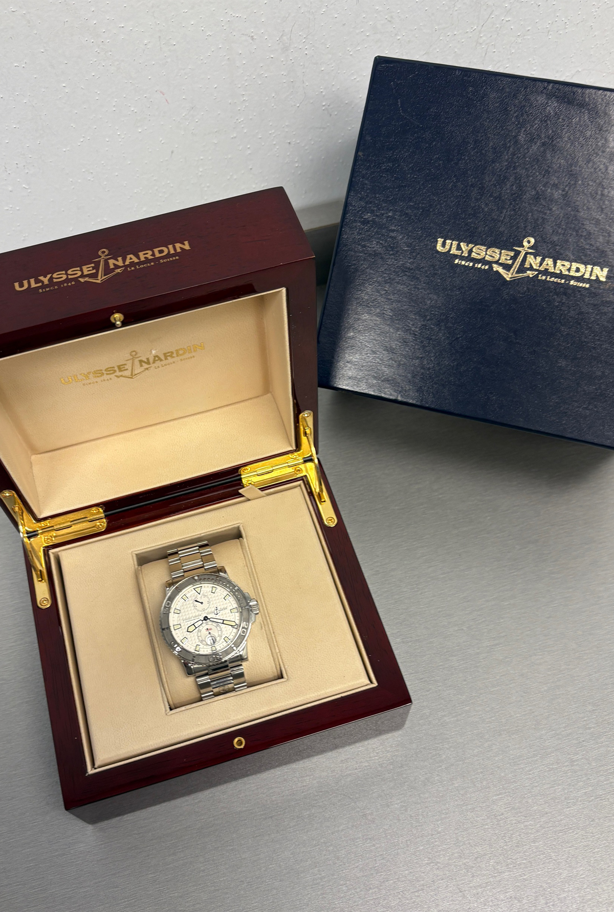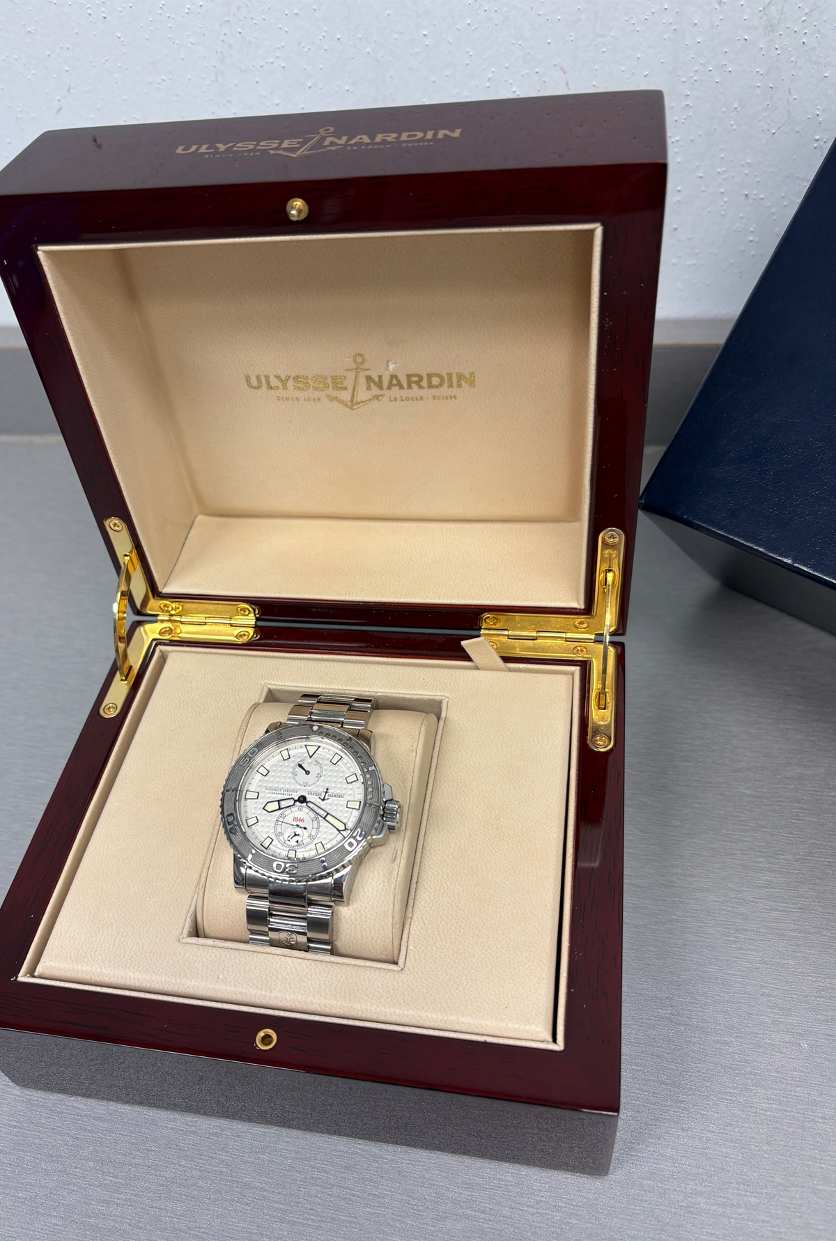 Additional Information: Ulysse Nardin polished wood box included