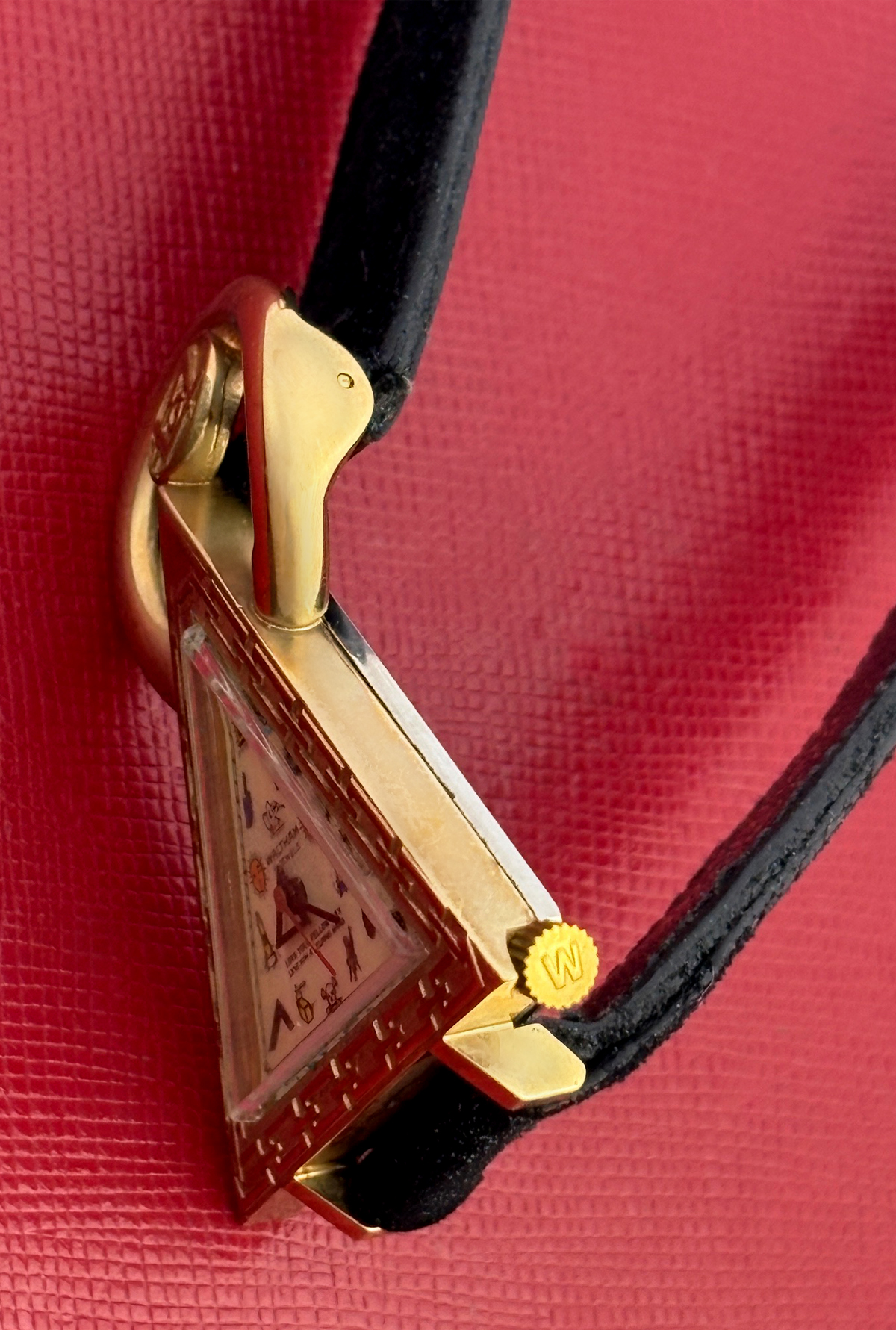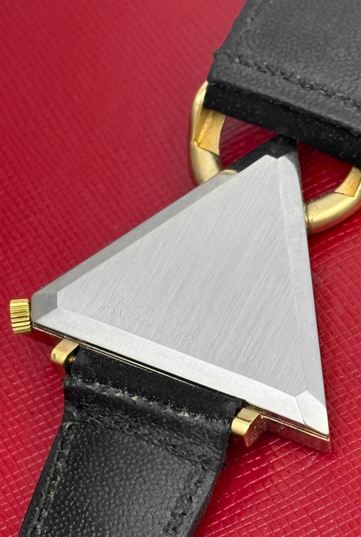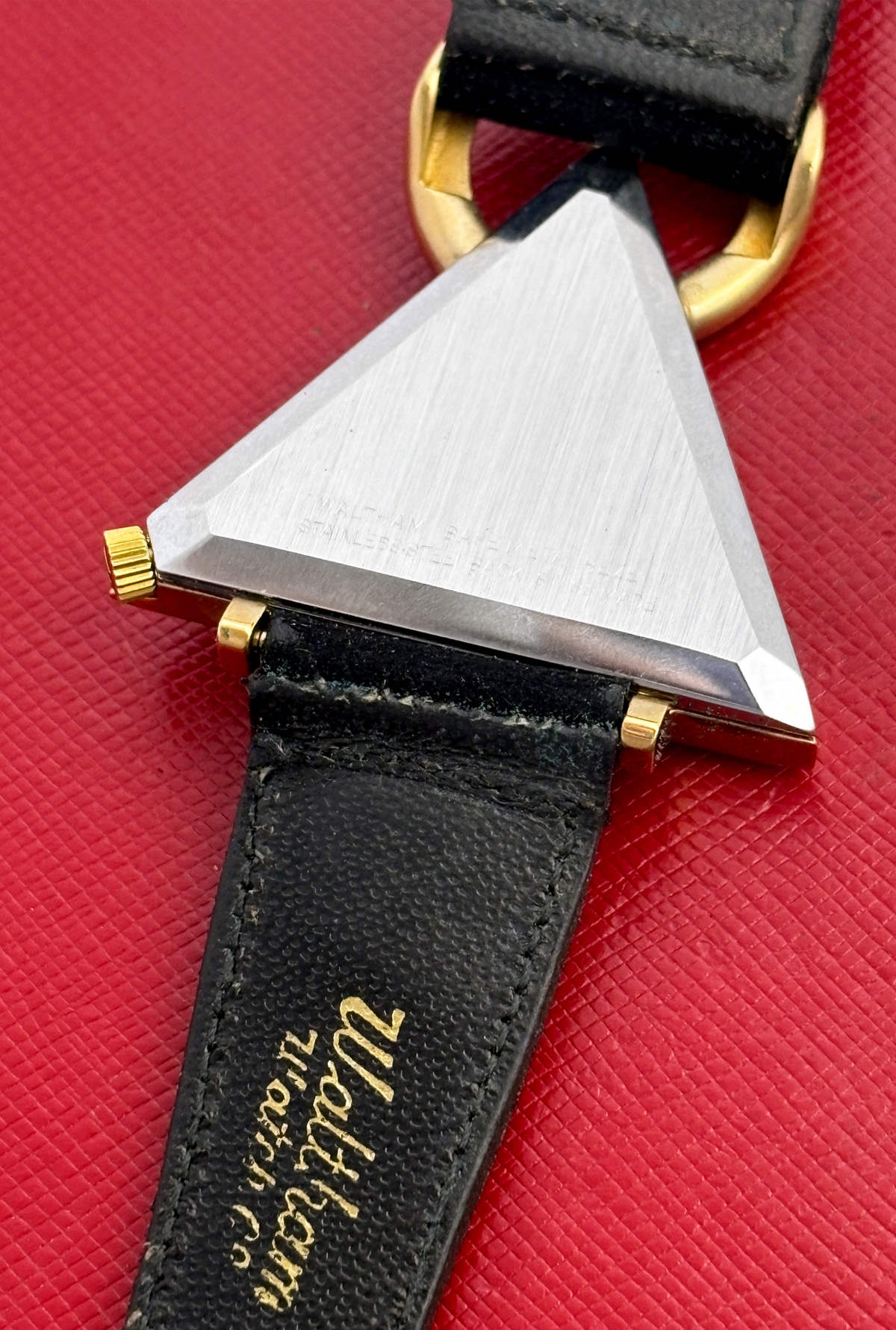 Case Material: Yellow Gold Filled triangular style case with stainless steel back (40x48mm)