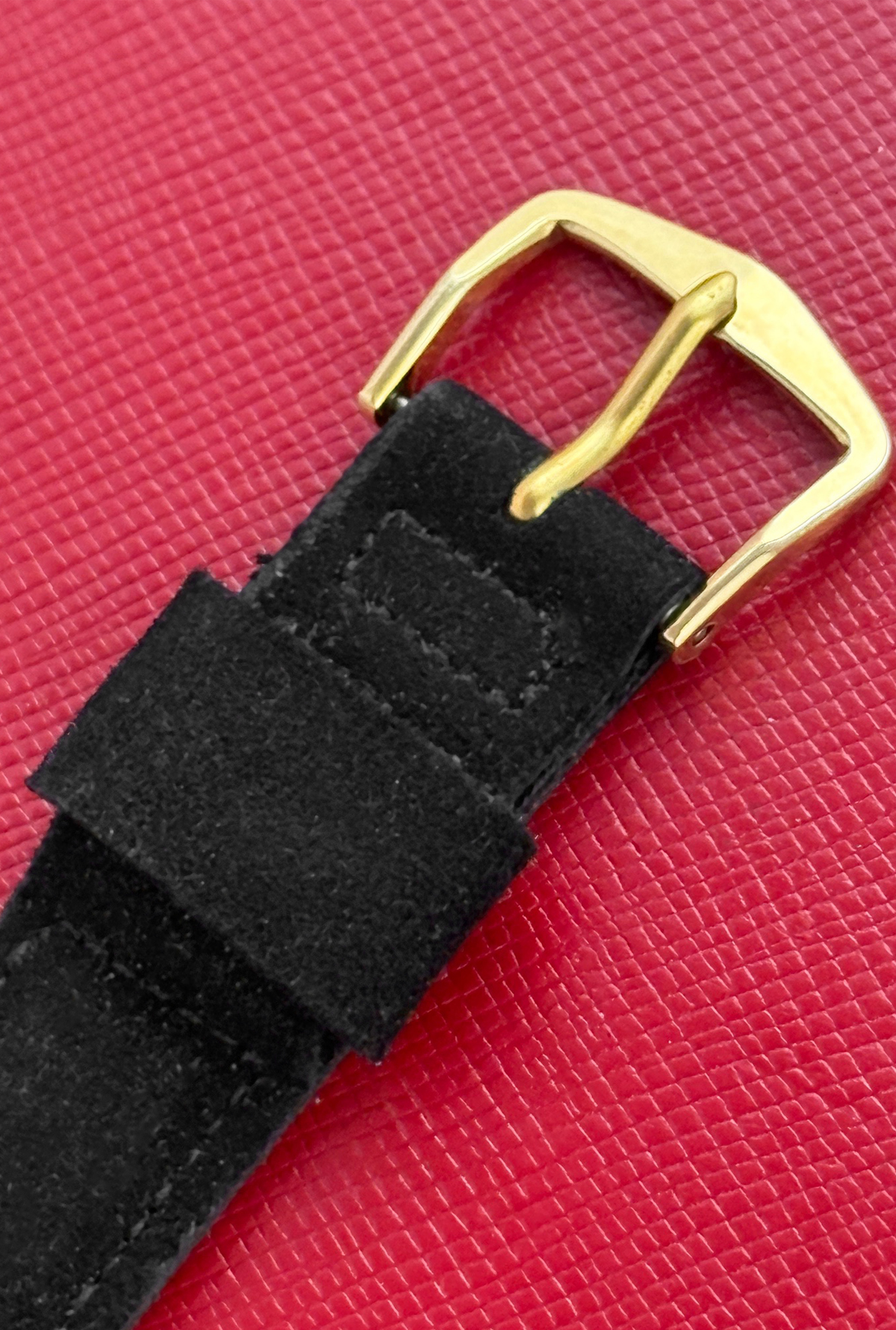 Strap: Black Waltham strap with yellow gold filled buckle
