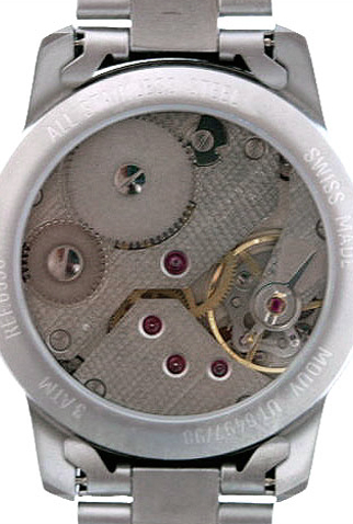 Case Material: Sandblasted stainless steel case with hardened mineral crystal with screw-on exposition back to view movement. Diameter 40mm. Length 48mm. Thickness 13mm. Water-resistant to 3ATM/100 Feet.