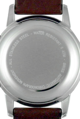 Movement Details: Swiss Made Mechanical with Automatic Winding. Chronograph with Quick Set Date. Valjoux 7750. Functions: Hours, Minutes, Date, Chronograph, 30 Minute and 12 Hour Registers.