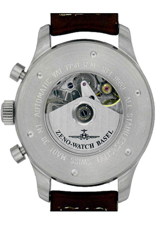 Case Material: Satin-finish stainless steel case with hardened mineral crystal with screw-on exposition back to view movement. Diameter 42mm. Length 50mm. Thickness 13mm. Strap width 20mm. Water-resistance: 3ATM/100 Feet
